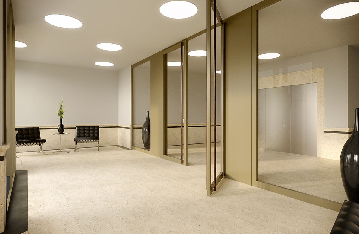 Büroräumlichkeiten: Die grosszügigen Büroräumlichkeiten überzeugen durch ihre gehobene Ausstattung aus Naturstein. Diese kann je nach Bedarf angepasst bzw. neu gestaltet werden.